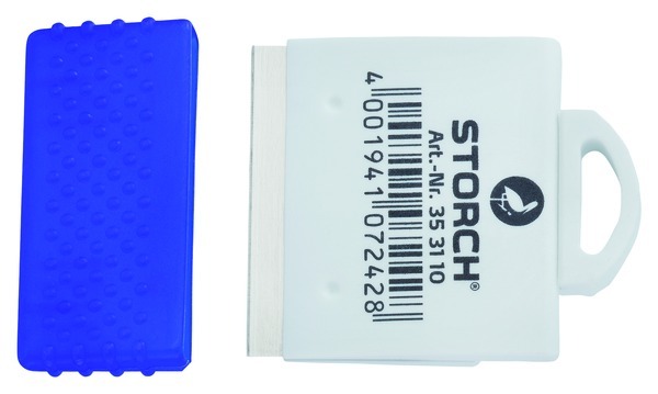 Mit Halter und Schutzkappe, Klinge einseitig verwendbar.