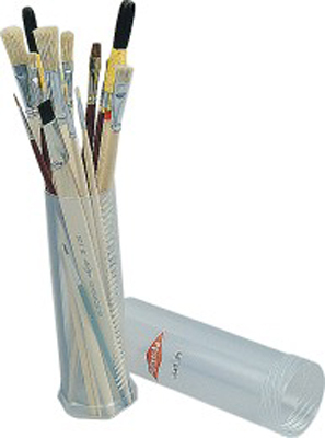 vom Maler- und Lackiererfachverband empfohlen, in runder schraubbarer Klarsichtbox, Inhalt 20 Stück, Plakatschreiber, Aquarellpinsel, Gussow-Künstler-Pinsel, Strichzieher, Plattpinsel und Lackierpinsel