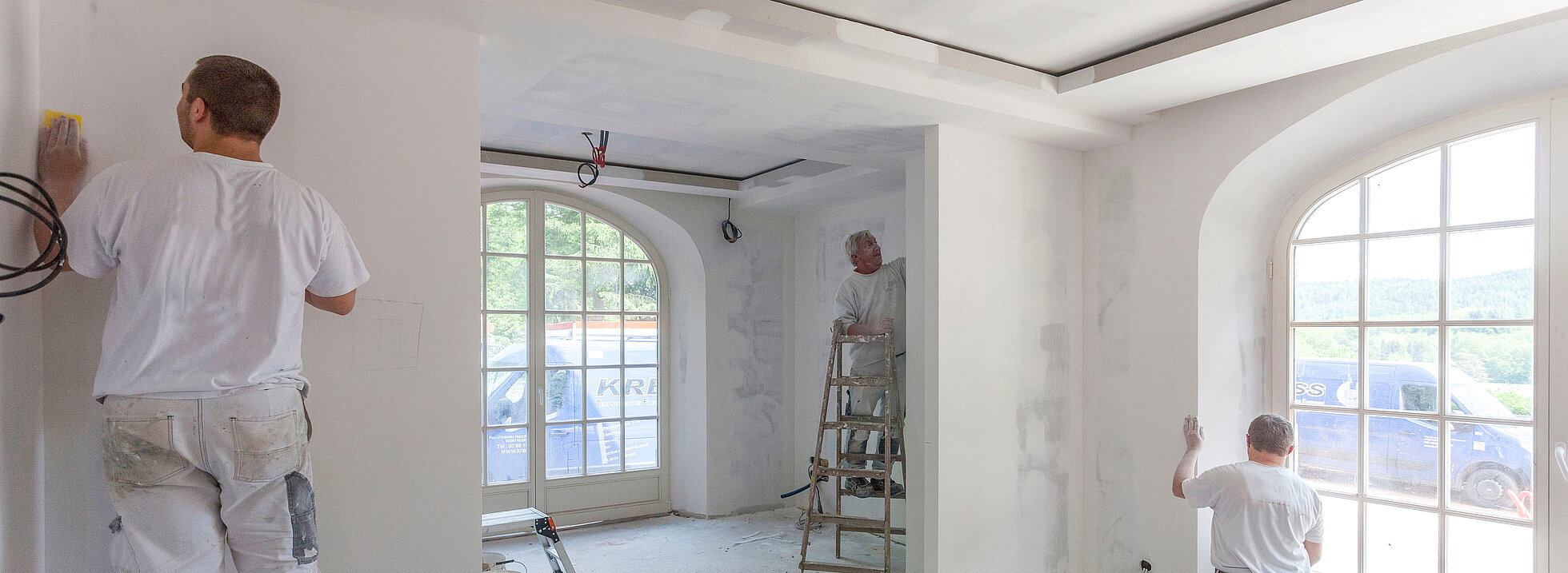 Lernen Sie einzA Fertigspachtel und Grundierfarben kennen – in Kombination mit Kobau Vliesen und Geweben in Verarbeitung mit der Storch Airless Technik.